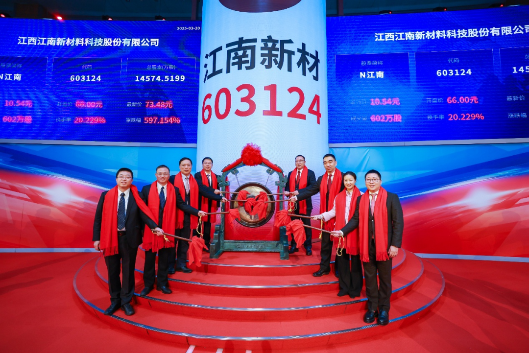 2025年3月20日,江西江南新材料科技股份有限公司(以下简称江南新材,603124.SH)成功在上海证券交易所主板上市,募集资金总额3.84亿元,中信证券担任独家保荐机构和主承销商。中信证券公司总监、全球投资银行管理委员会联席主任潘锋出席上市仪式。